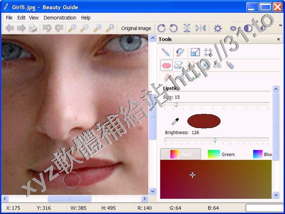 Beauty Guide 是一款人像美容軟體,可以給照片去斑,上色,增加人像的眼影,光滑皮膚,
