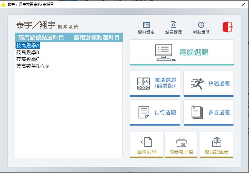 111學年下學期 技術高中命題光碟 泰宇版 數學科(A、B、C、B乙版)(108課綱) 題庫光碟