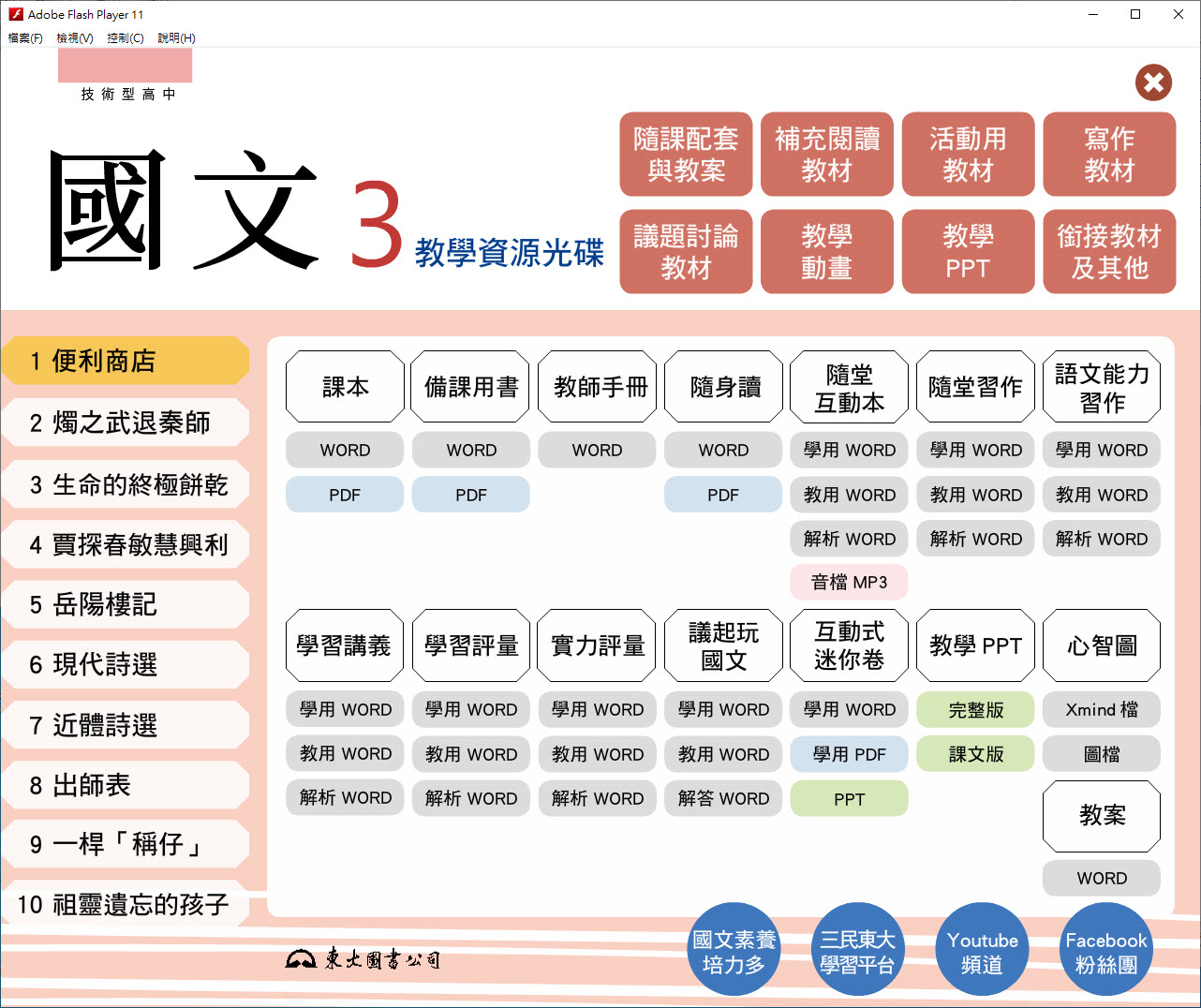 112學年上學期 技術高中 三民東大版 國文科 2年級 教學光碟