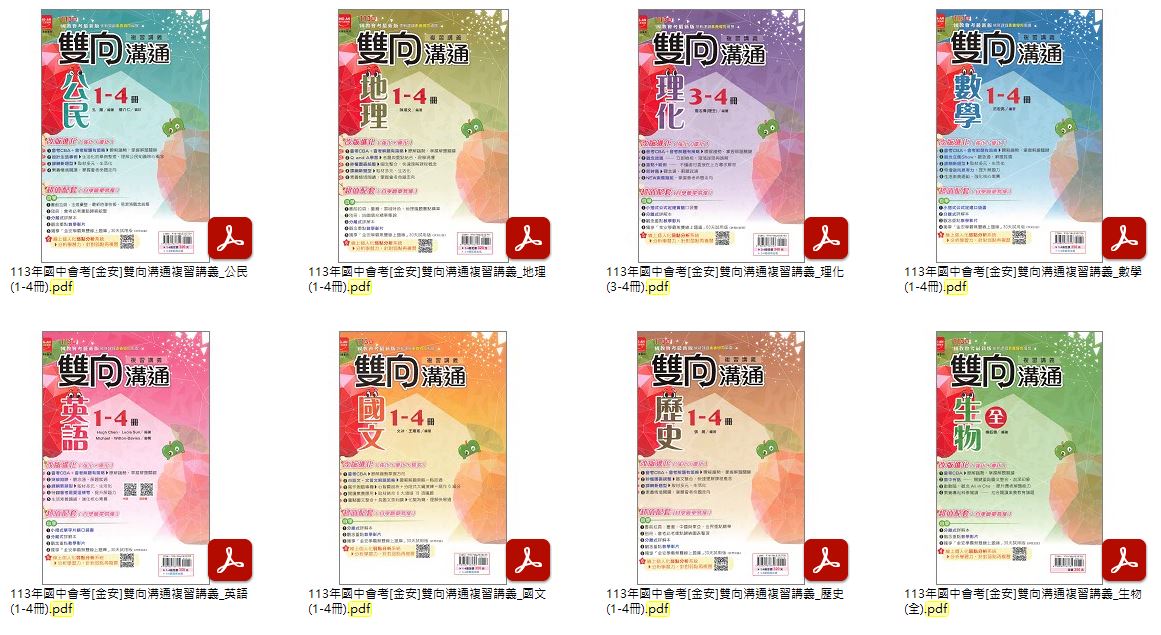 113年國中會考[金安]735總複習(英語、數學、理化) + 新思維複習講義 + 雙向溝通複習講義 + 國文主題讚 講義光碟