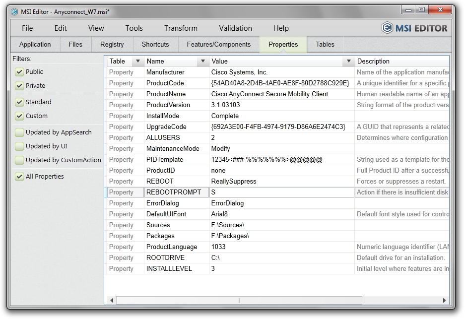 With the help of MSI Editor you have
