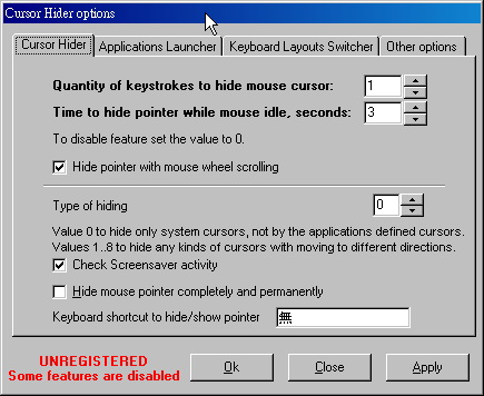 • Cursor Hider v1.5.0.5 英文正式版(滑鼠指針隱藏工具軟體)