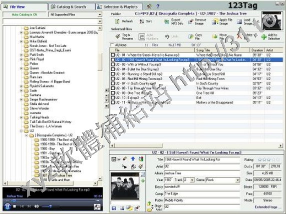 name or embedded Tags. Also MP3 player and file manager. En-mass file