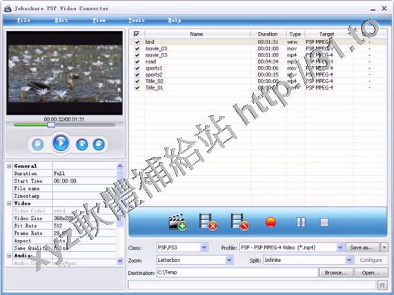 Joboshare PSP Video Converter是專為Sony PSP 設計的視頻轉換軟體,它可以轉換視頻到