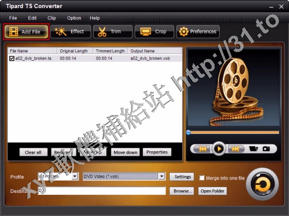 文件,轉換TS到VOB,WMV,3GP,MP4等高清視頻。