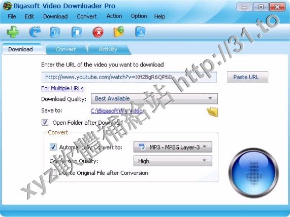 Bigasoft Video Downloader Pro提供了YouTube在線視頻下載,以最好的質量和轉換YouTube視頻,
